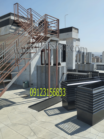 ونردههای محافظ راه پله فلزی اتاقک آسانسور ، ایمنی را در ارتفاعات تکمبل میکنند.